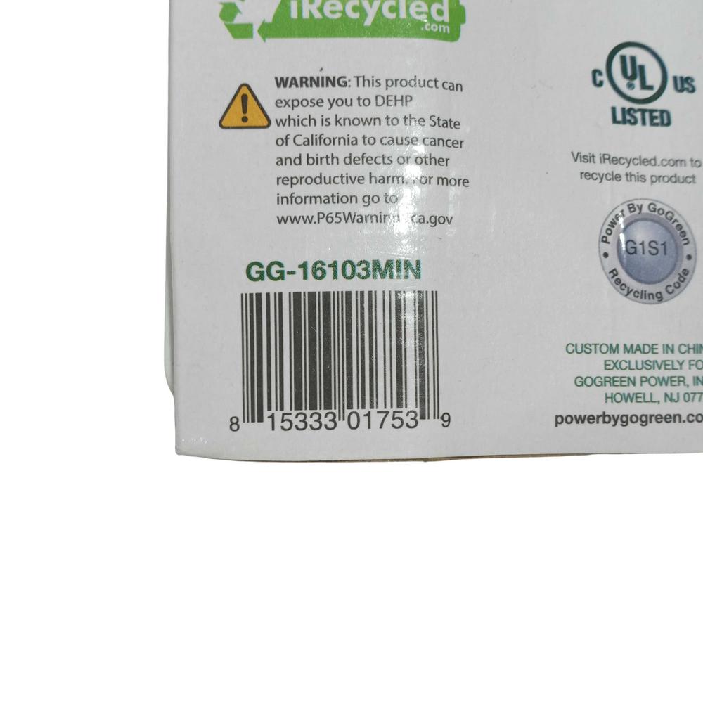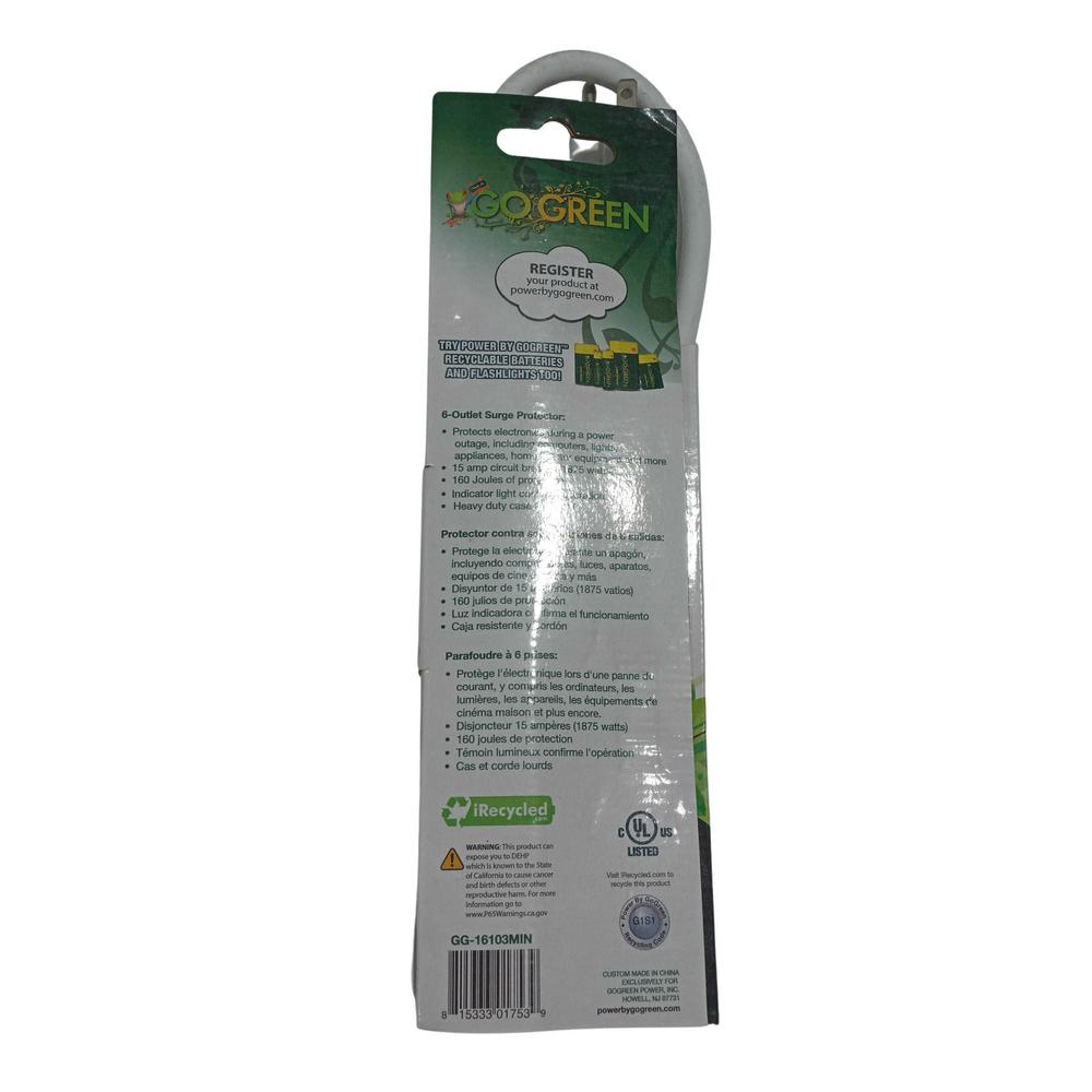 GO GREEN EXTENSION CORD 6' GG16103 1PC