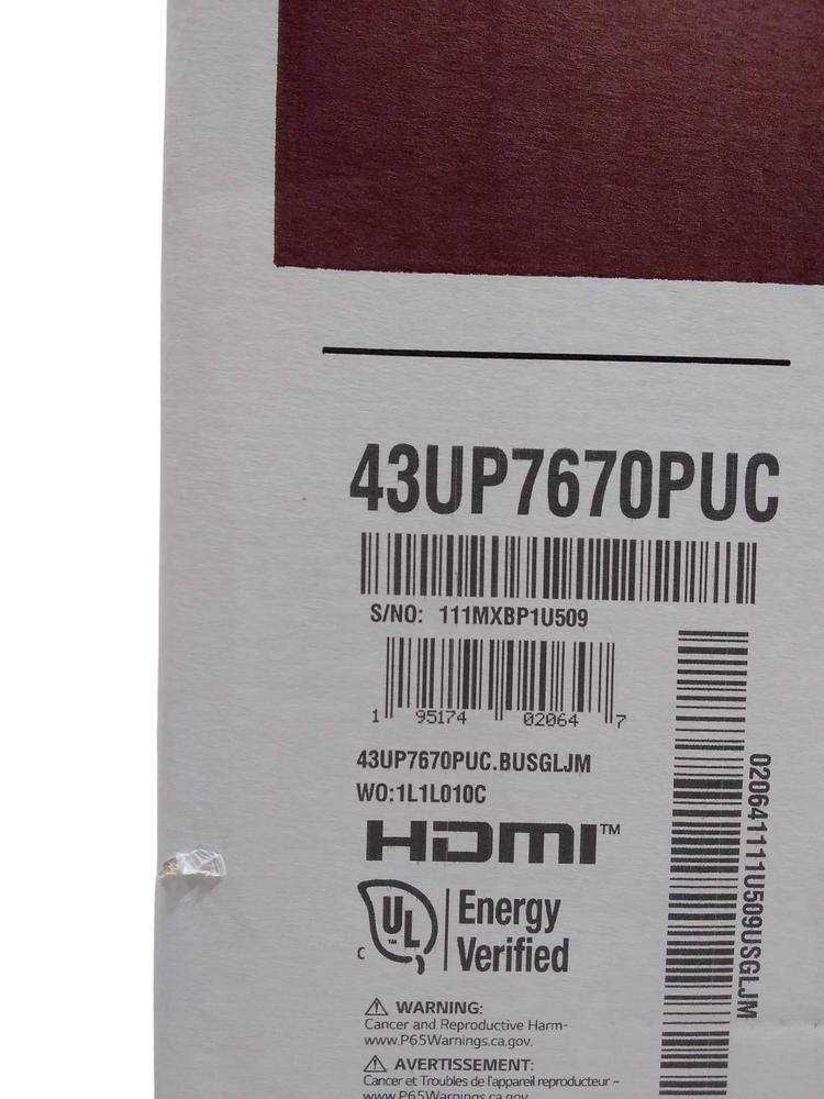 LG TV 43" SMART 43UP7670 1PC