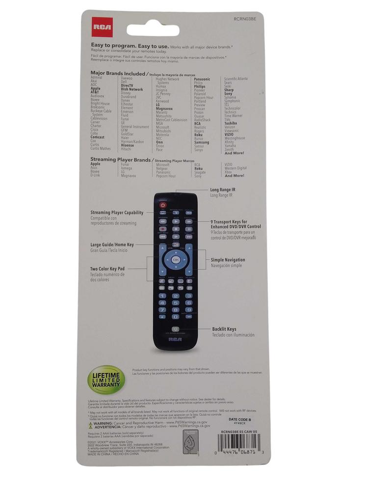 RCA REMOTE UNIVERSAL RCRN03BE 1PC