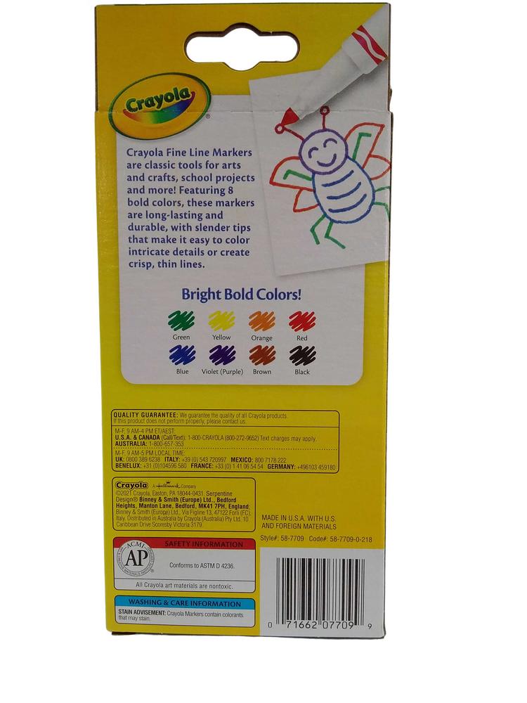 CRAYOLA MARKERS FINE LINE 8CT